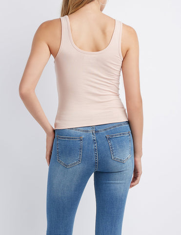 Tonal stitching adds a bit of texture to this figure flattering cami! Skinny shoulder straps frame a scoop neckline, where fluttery lettuce-trim finishes this look off just right! Complete the look with a cute pair of destroyed skinny jeans and a pair of edgy ankle booties!